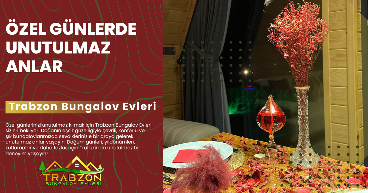 Unutulmaz bir Trabzon deneyimi için Trabzon Bungalov Evleri'nin kapıları sizlere sonuna kadar açıktır. Doğayla iç içe, huzur dolu bir konaklama arıyorsanız, sizleri ailemize katılmaya ve unutulmaz anılar biriktirmeye davet ediyoruz.